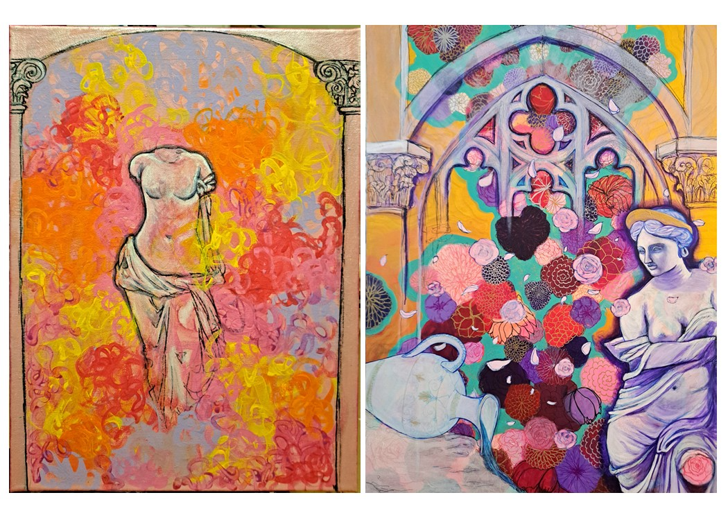 Join us at the opening for Janice M. Crum: Floralia. These new paintings and collage are inspired by the ancient Roman spring festival to honor Floralia, Goddess of Flowers. Crum is a multidisciplinary artist, spiritualist, and single mother.