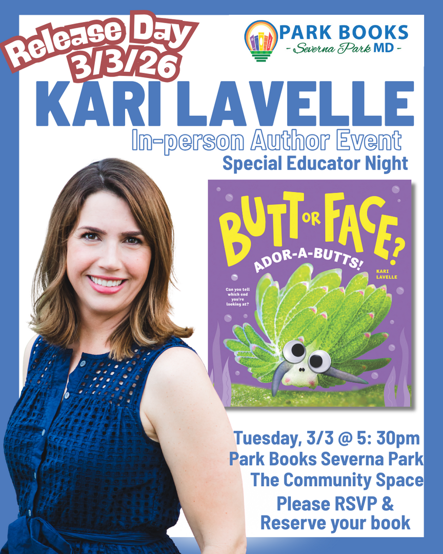 Park Books is excited to host, Kari Lavelle, award-winning author of BUTT OR FACE? Series and many more! We will host her in our community space, and all are welcome! We are sending a special invitation to Educators and Kari will share information that will be helpful in your elementary classroom! This is a free event, and Kari will be signing her new release and books from home. Please purchase a book and/or a free seat ticket.