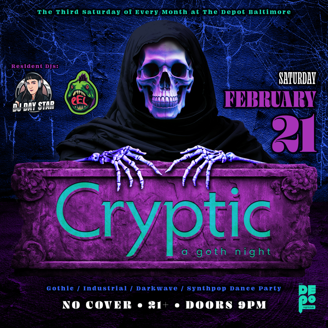Join DJs Day Star and eEL as they spin goth, darkwave, synthpop, EBM, industrial tunes & MORE on the 3rd Saturday of every month—this time it's February 21st—at The Depot Baltimore!