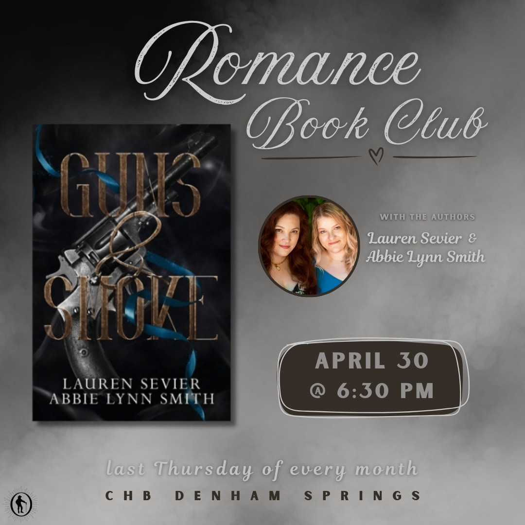 Romance Book Club is here for all your romantic and swoony needs! We hope this book club will bring us together as a community of book lovers, as we dive into tropes, nopes, and sparks. This month, we will be meeting on April 30th from 6:30-8:30 PM to discuss Guns & Smoke by Lauren Sevier and Abbie Lynn Smith! The authors will also be attending book club to answer questions and sign copies of their books!Buying the book from CHB helps to support the store and helps enable us to keep these book clubs going! Swing by the store to grab your copy or purchase the book on our website!Want to join the discussion online? Join our CHB Book Club Discord!