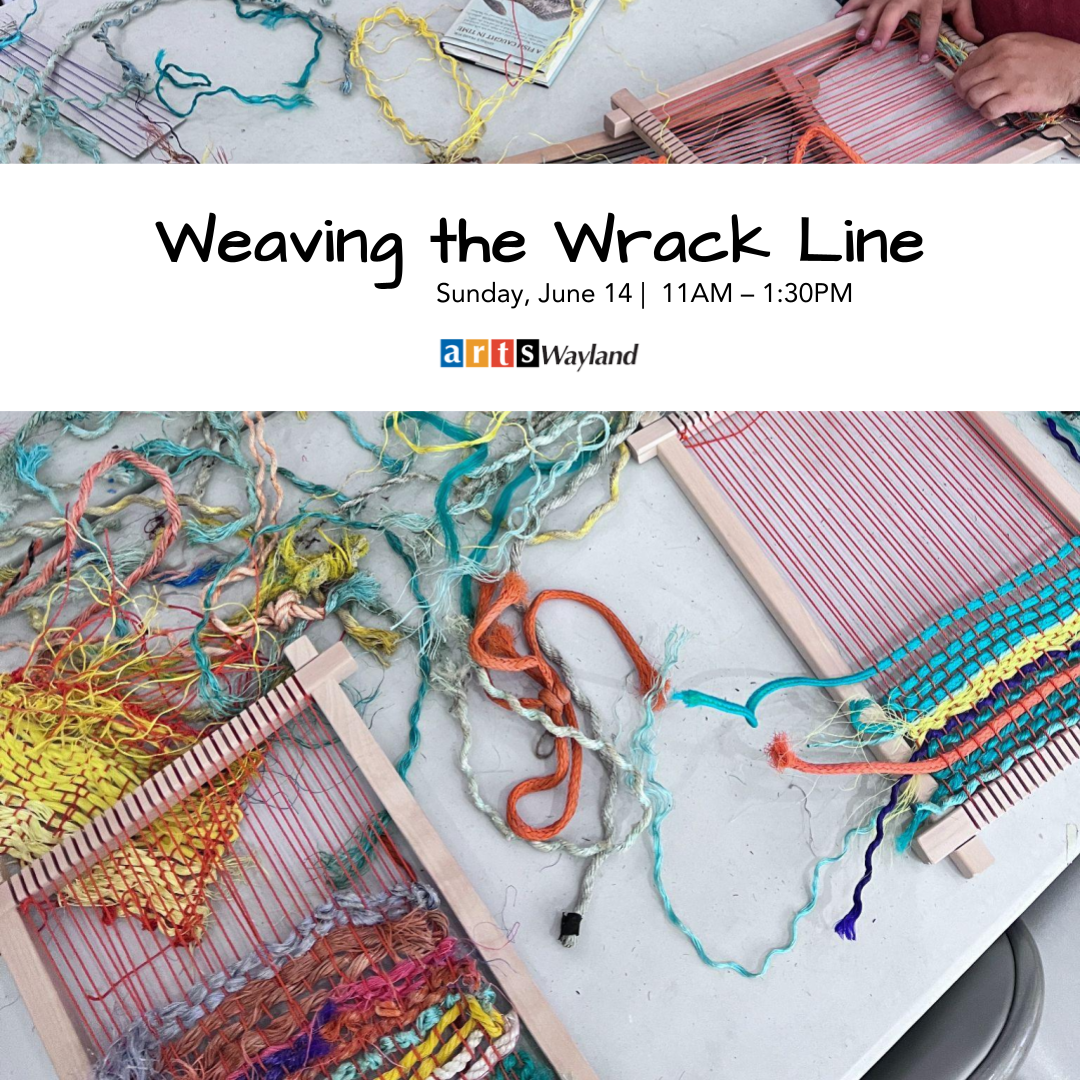 Join fiber artist and ocean activist Rebecca McGee Tuck for Weaving the Wrack Line, an interactive weaving workshop that transforms marine debris and reclaimed materials into meaningful works of art. As part of Arts Wayland’s Eco Month, participants will learn simple weaving techniques on frame looms, experiment with alternative materials, and create a small weaving that reflects both personal creativity and environmental stewardship. All materials are provided. Suitable for beginners and experienced makers.