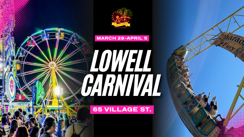 The carnival is coming to Lowell March 26 through April 6. The carnival will be held at 65 Village St, Lowell, MA 01852. The carnival will feature rides, games and food.