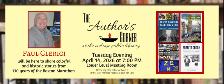 At Melrose Public Library on Tue., April 14, 2026, at 7 p.m., join bestselling author Paul Clerici as he delivers his new multimedia presentation “Boston Marathon at 130,” about a week before the famous race will be held.