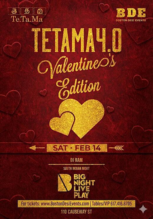Get ready for an unforgettable Valentine’s night as Boston Desi Events (BDE) and Te.Ta.Ma bring you Te.Ta.Ma 4.0: Valentine’s Edition, the hottest South Indian nightlife experience in Boston this February!