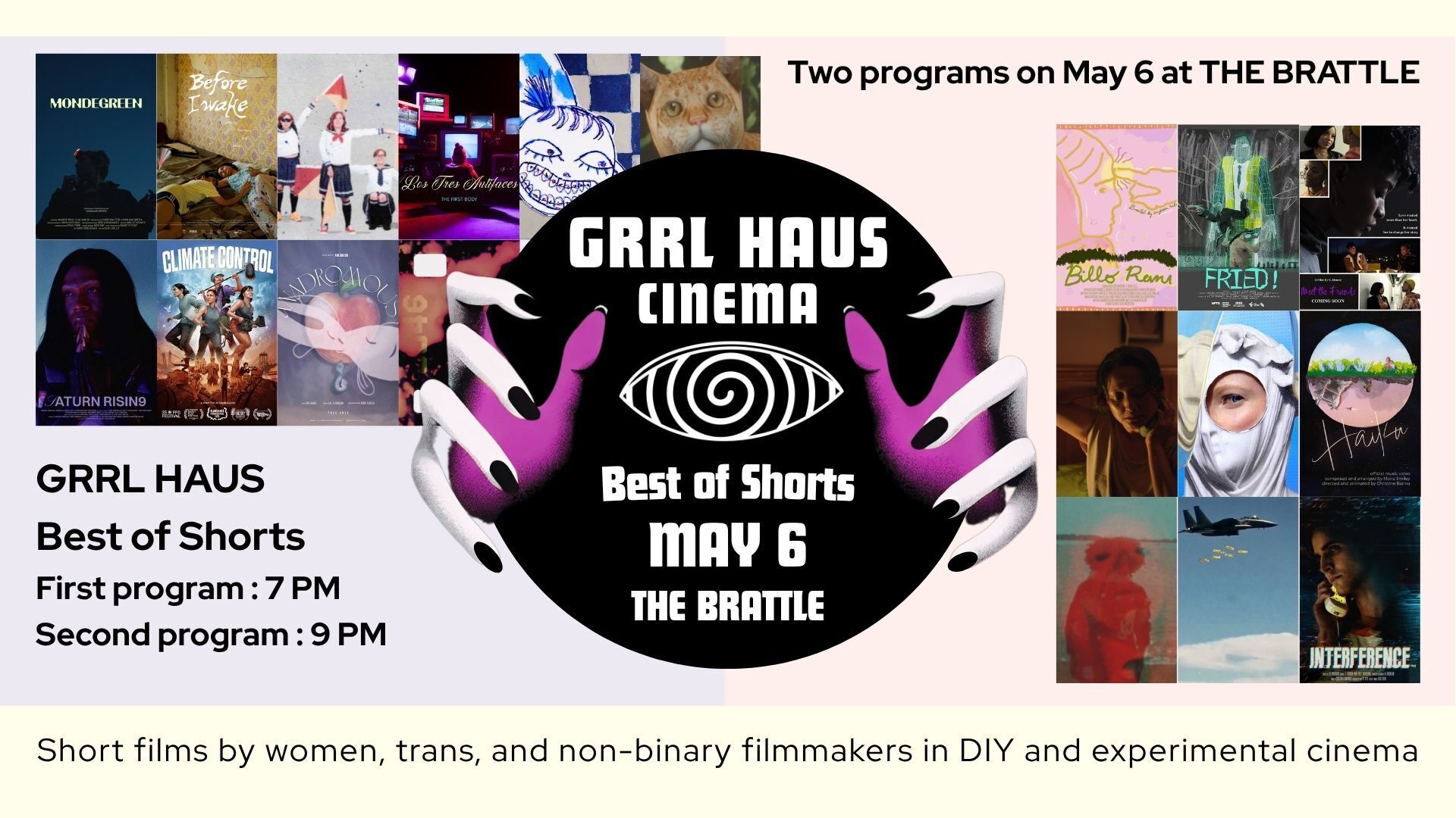GRRL HAUS CINEMA presents the Best of Shorts program for a special one-night event at The Brattle on May 6, 2026, featuring two programs at 7:00 PM and 9:00 PM.