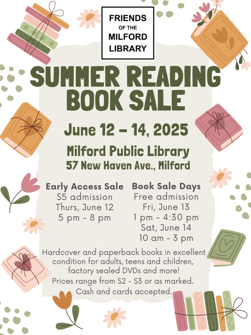 All proceeds raised at the sale are used to fund library programs for children and adults, museum passes, and more. The Milford Public Library is located at 57 New Haven Ave., Milford, CT 06460.
