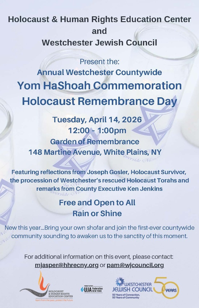 Featuring reflections from Joseph Gosler, Holocaust Survivor, the procession of Westchester’s rescued Holocaust Torahs and remarks from County Executive Ken Jenkins For additional information on this event, please contact: [email protected] or [email protected].