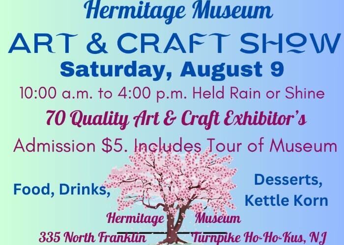 The annual Hermitage Museum's Outdoor Craft Show will be held on Saturday, August 9, from 10 AM to 4 PM. The Hermitage is located at 335 North Franklin Turnpike, Hohokus, NJ. (next to Ridgewood) This extraordinary event brings together seventy talented artisans from near and far showcasing their unique creations in this beautiful open-air setting on the tree shaded front lawn of this historic site. You do not want to miss this exciting shopping experience where you will discover an array of handmade items, art, and photography.