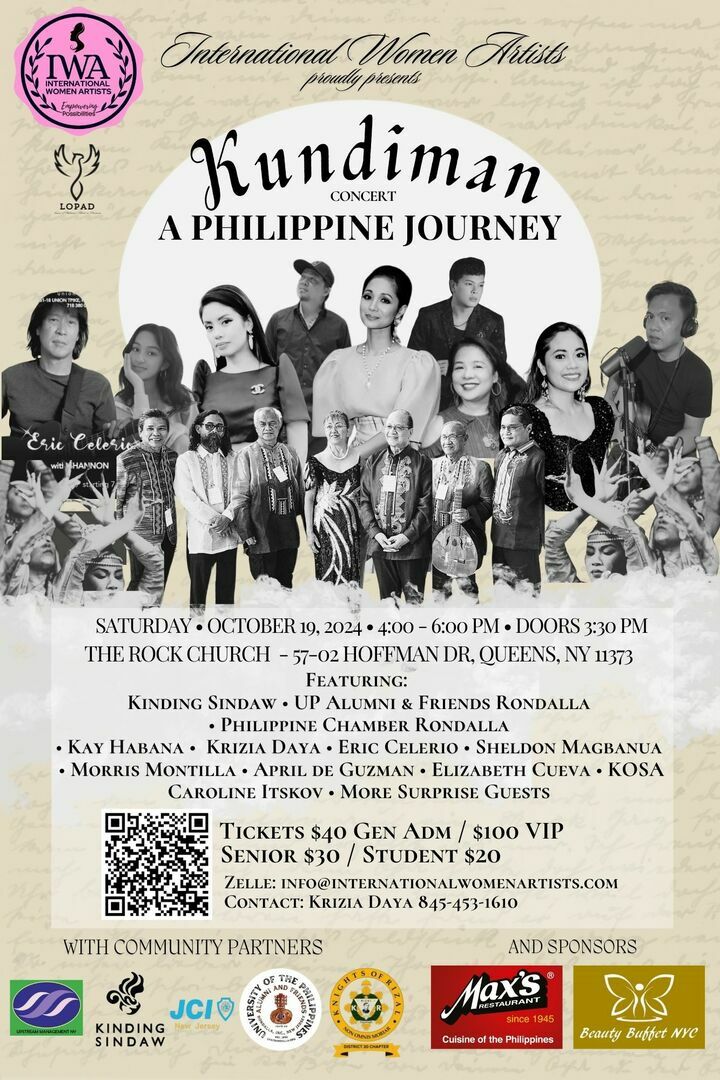 We are pleased to invite you to our concert, Kundiman: A Philippine Journey, on Saturday, October 19, 2024, 4-6 pm, at the Rock Church in Elmhurst, Queens.