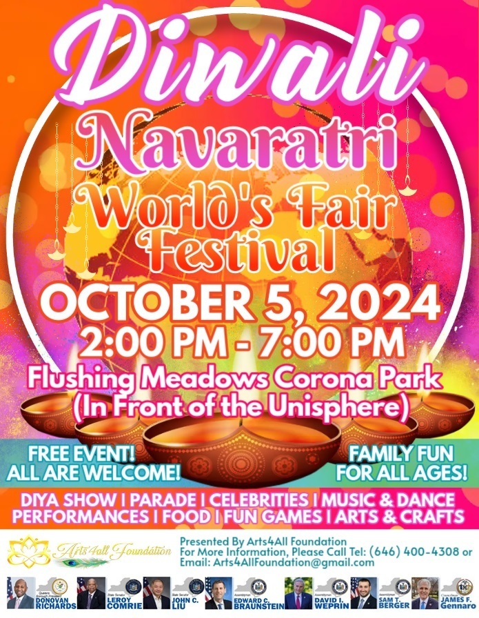 On the 60th anniversary year of the World's Fair, Arts4All Foundation is hosting the 1st ever World's Fair Diwali and Navarati Festival and Parade Celebration.