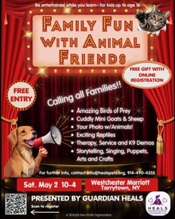 Kids will be inspired by their love of animals! A day to educate and entertain. Learn all about our animal friends and how to properly approach, handle and care for them. Singing, storytelling, music, puppets, arts and crafts, live animal demonstrations. Vendors will be offering homemade and handcrafted goods, many with animal themes. Free admission. A great way for parents and grandparents to spend the day offline with their children and grandchildren. Learn how to lose your fear of dogs. Experience the most compassionate ways to interact with cats and kittens. Get up close with adorable mini goats and soft sheep. View magnificent birds of prey and fantastic reptiles. Take family photos with animals! See highly trained police dogs in action. Understand the important role service and therapy dogs play in the lives of their humans. Say hello to our therapy cat! Come join in the fun!