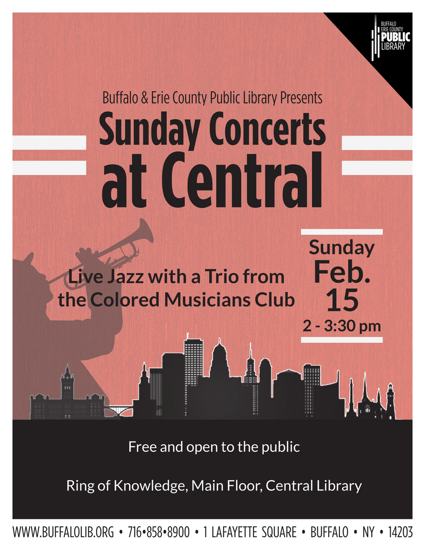 Join us for a Sunday afternoon concert! A trio of musicians from the Colored Musicians Club will bring live jazz to the Central Library.
