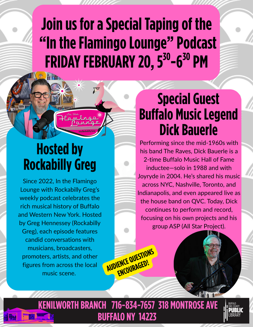 Join us on Friday, February 20, for a special live taping featuring Dick Bauerle—two-time Buffalo Music Hall of Fame inductee and legendary performer with The Raves, Joyryde, and ASP.