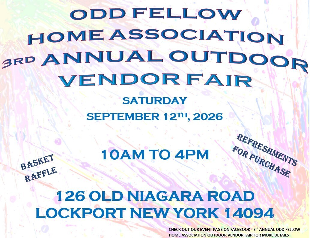 With that being said we’re looking for vendors for the 3rd Annual Odd Fellow Home Association Outdoor Vender Fair!!! Kathie with contacts listed on the image below is the ONLY contact for this event. Please contact her with any questions. Please watch out for scammers and spam.