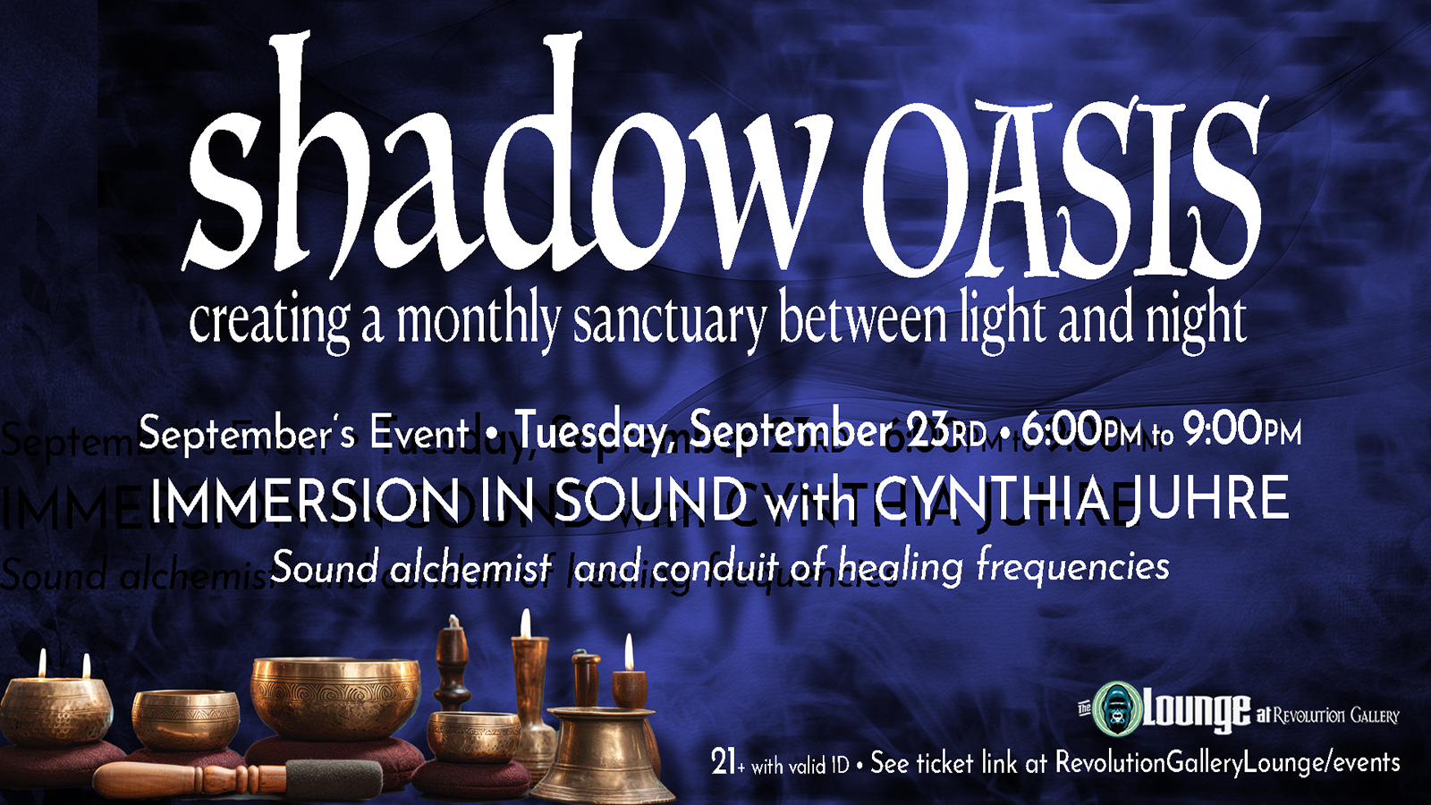 September’s event is IMMERSION IN SOUND – with CYNTHIA JUHRE (Sound Alchemist and Conduit of Healing Frequencies). Her “Vibrations of the Inner Self: Introduction to Sound Bath Healing” will guide the guests through two sessions of calming sound baths conducted by Cynthia.