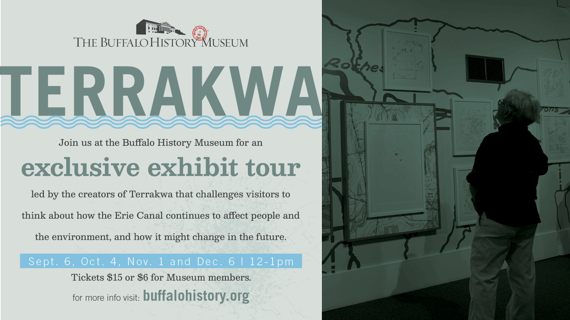 Join us at the Buffalo History Museum for an exclusive exhibit tour led by the creators of Terrakwa that challenges visitors to think about how the Erie Canal continues to affect people and the environment, and how it might change in the future.