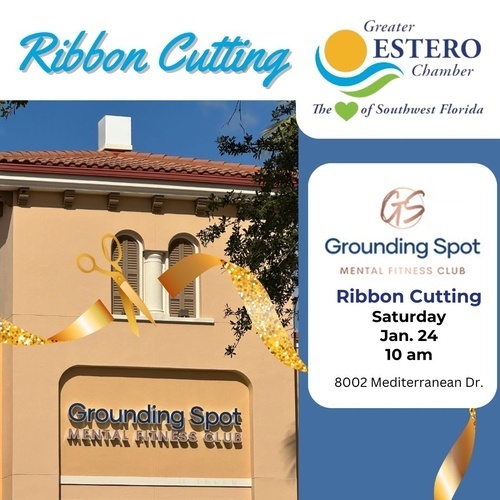 The Greater Estero Chamber of Commerce invites you to join us as we celebrate the Ribbon Cutting for Grounding Spot in Estro. The ceremony will be held at 10:00 am on Saturday, January 24 at their location at 8002 Mediterranean Drive, Estero, FL.