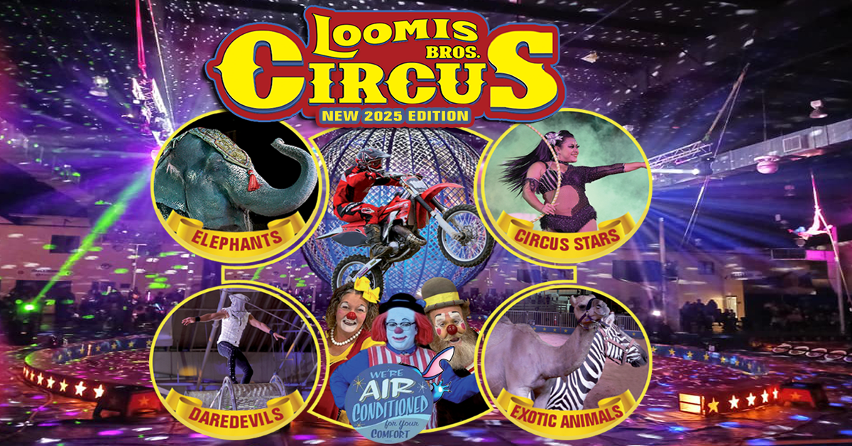 Come on out and experience the thrills at the 2025 edition of Loomis Bros. Circus. Join in on the fun and discover a captivating blend of classic circus charm and modern circus thrills, showcasing majestic animals displaying their amazing abilities, fearless daredevils that will have you on the edge of your seat, high-flying acrobats defying gravity, outlandish clowns, and much more...all backed by beat of a live band! The award-winning Loomis Bros. Circus is more than just a show; it's an unforgettable experience for audiences of all ages! Don't miss your chance to witness the magic firsthand. Discover why Loomis Bros Circus is "Simply the Best"!