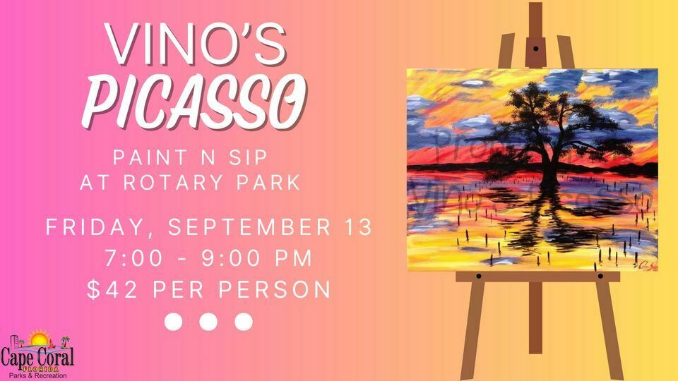 Open to participants of all ages (people under 21 need to be accompanied by a parent), join Vino's Picasso at Rotary Park for another fun Paint pARTy.