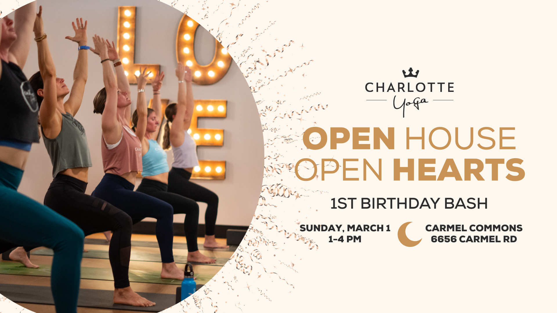 Charlotte Yoga, a locally owned studio community serving Charlotte since 2002, is celebrating the first anniversary of its Carmel Commons location with an afternoon open house and neighborhood block party on Sunday, March 1, from 1 to 4 p.m.