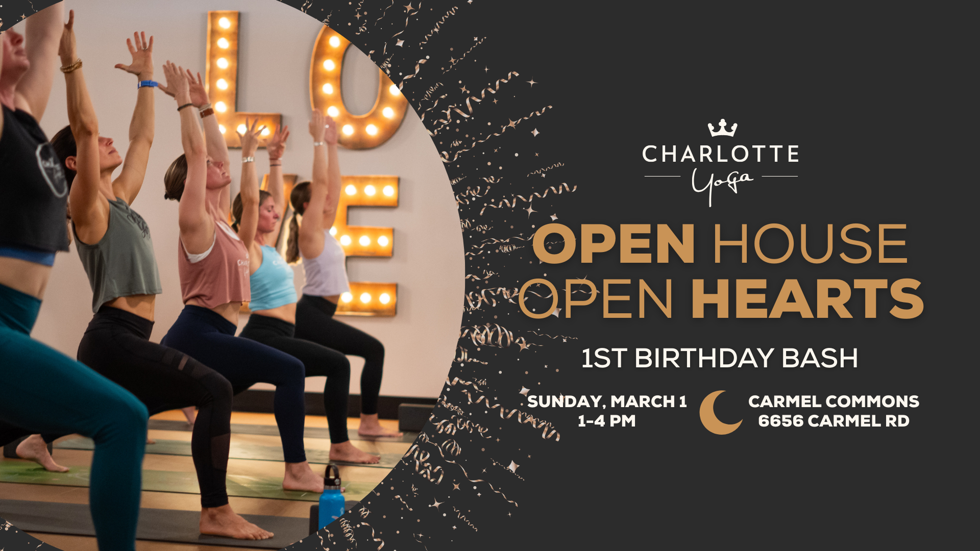 Charlotte Yoga, a locally owned studio community serving Charlotte since 2002, is celebrating the first anniversary of its Carmel Commons location with an afternoon open house and neighborhood block party on Sunday, March 1, from 1 to 4 pm.