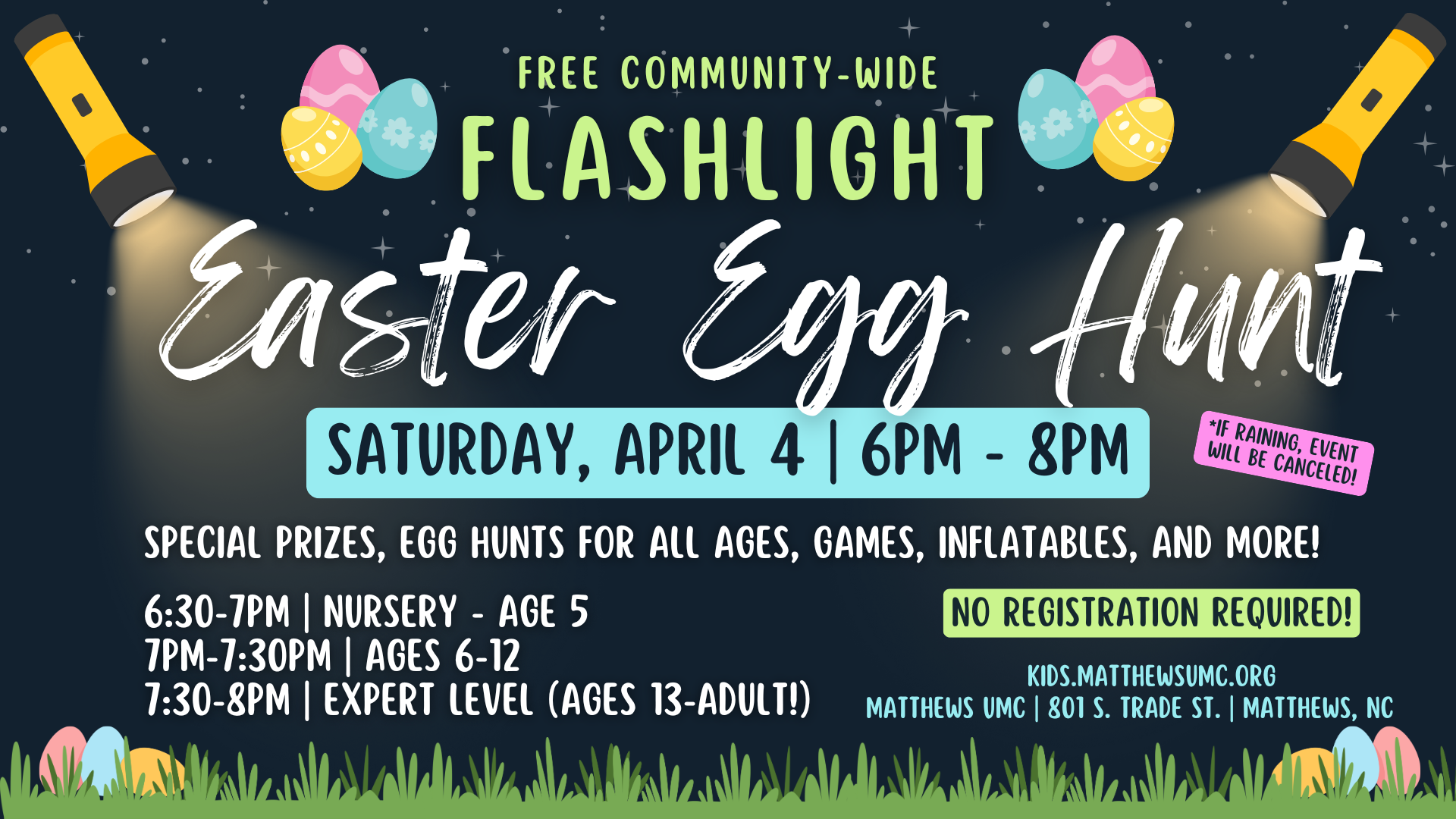 Bring your family, friends, or just you for an awesome evening! There will be Special Prizes, Egg Hunts for ALL ages, Games, Inflatables, and More!