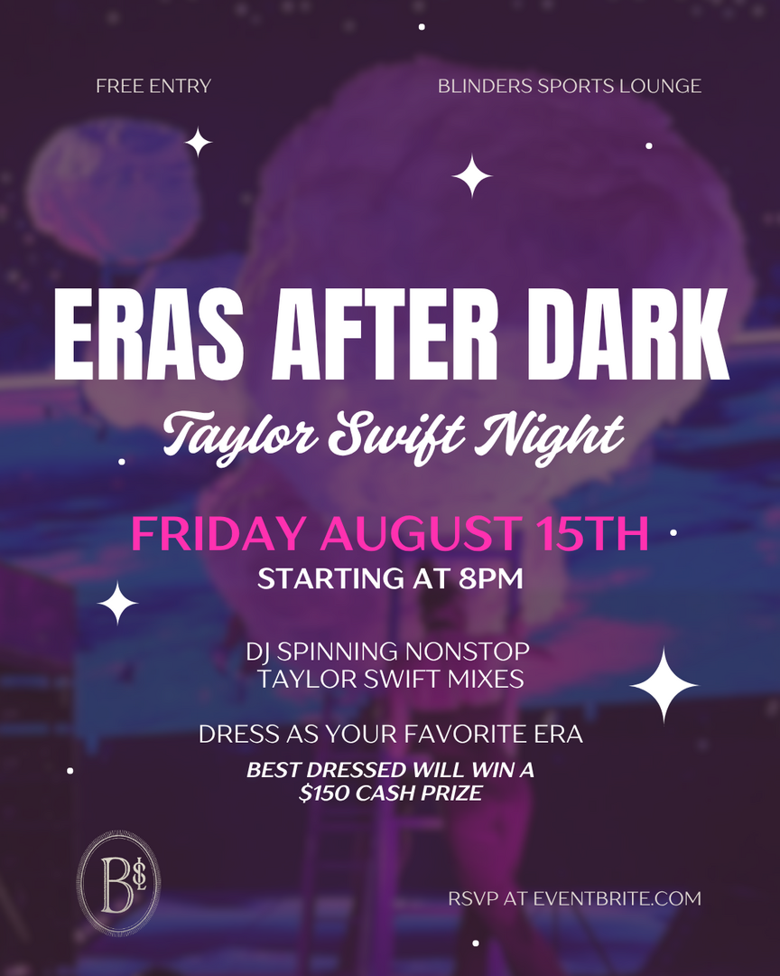 Swifties, are you Ready For It? Join us for Eras After Dark, the ultimate Taylor Swift night where we celebrate every era β from Debut to The Tortured Poets Department. Whether you're channeling Fearless, Reputation, or Lover, this is your night to dress up, sing loud, and live your best Swiftie life.