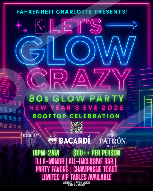 Need a dinner option before? Check Out Fahrenheit's Elegant Four-Course NYE Dinner: From 4:00pm-8:00pm, Fahrenheit will serve an indulgent, chef-curated four-course menu at $125 per person. Guests can begin the evening with elegant courses and cocktails, enjoying the restaurant's signature style before the party begins. You also have the option to add on the 10pm-2am NYE Party Package to your dinner package for $80. Reservations are required for NYE dinner. To make your reservation visit OpenTable at https://www.opentable.com/r/fahrenheit-charlotte or call 980-237-6718.