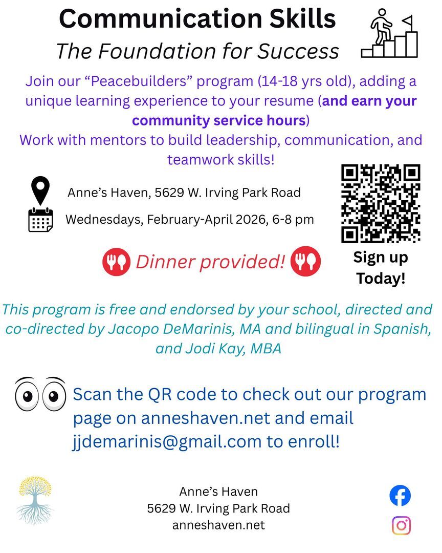 The program is directed by Jacopo DeMarinis, a Chicago Public Schools teacher with a Master’s degree in Peace and Conflict Studies, and Jodi Kay, a valued member of Anne’s Haven’s team who has an MBA from DePaul.