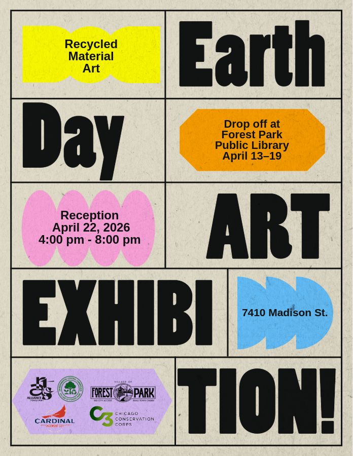 Presented in partnership with the Village of Forest Park, Forest Park Arts Alliance, Environmental Control Commission, Chicago Conservation Corps (C3), Cardinal Advancement Services, and the Forest Park Public Library.