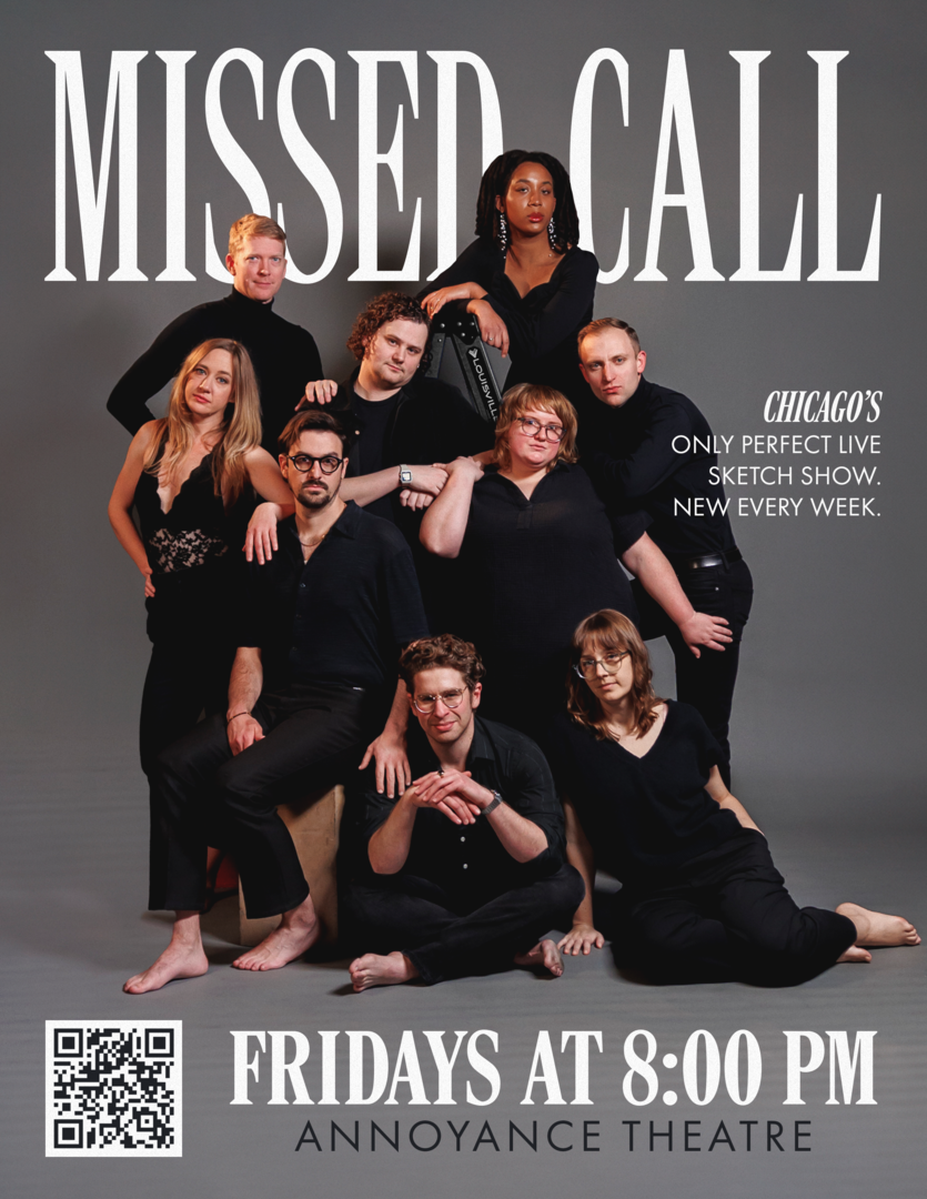 HomeEventsMissed Call Missed Call Friday, September 04, 2026 8:00 PM - 9:00 PM 8:00 PM - 9:00 PM See all dates and Times Annoyance Theatre & Bar Parking Deals Get a Ride LYFT UBER Add to Calendar 09/04/2026 08:00 PM 09/04/2026 09:00 PM America/Atikokan Missed Call Missed Call is a premier Chicago comedy group that writes and performs an entirely new sketch show every Friday.Event LinksTickets: https://go.evvnt.com/3482986-0 Details & Tickets: https://www.upcomingevents.com/chicago/events/annoyance-theatre-bar/missed-call-602596?ref=uceaddevent Annoyance Theatre & Bar, 851 West Belmont Avenue, Chicago, IL, 60657 Set Reminder Categories Comedy, Comedy Show, Live Entertainment, Performing Arts Missed Call is a premier Chicago comedy group that writes and performs an entirely new sketch show every Friday.Event LinksTickets: https://go.evvnt.com/3482986-0 Read More View Less