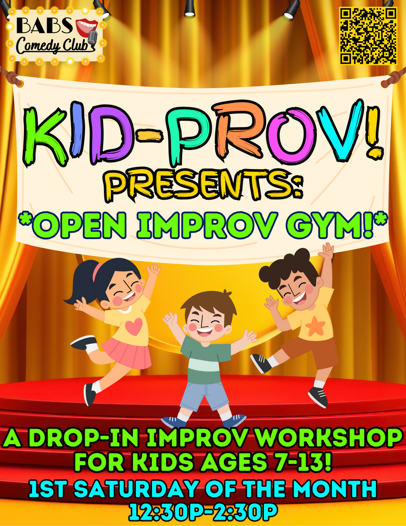 🎟️ After the Kid-Prov Gym, kids are welcome to stay and watch our popular Kid-Prov show for FREE with a parent or guardian present!