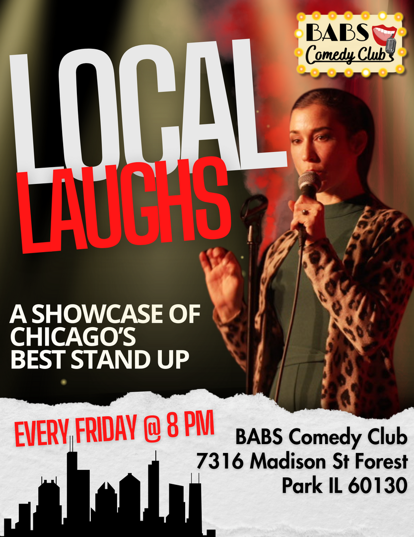 Every Friday BABS Comedy Club brings the funny in full force with a hand-picked lineup of rising stars and killer headliners youβve seen at the biggest comedy clubs in Chicago and across the country. This is comedy up close and hilarious. No overpriced drinks. No two-drink minimum. Just you, your friends, your favorite snacks, and some of the best stand-up in the city.