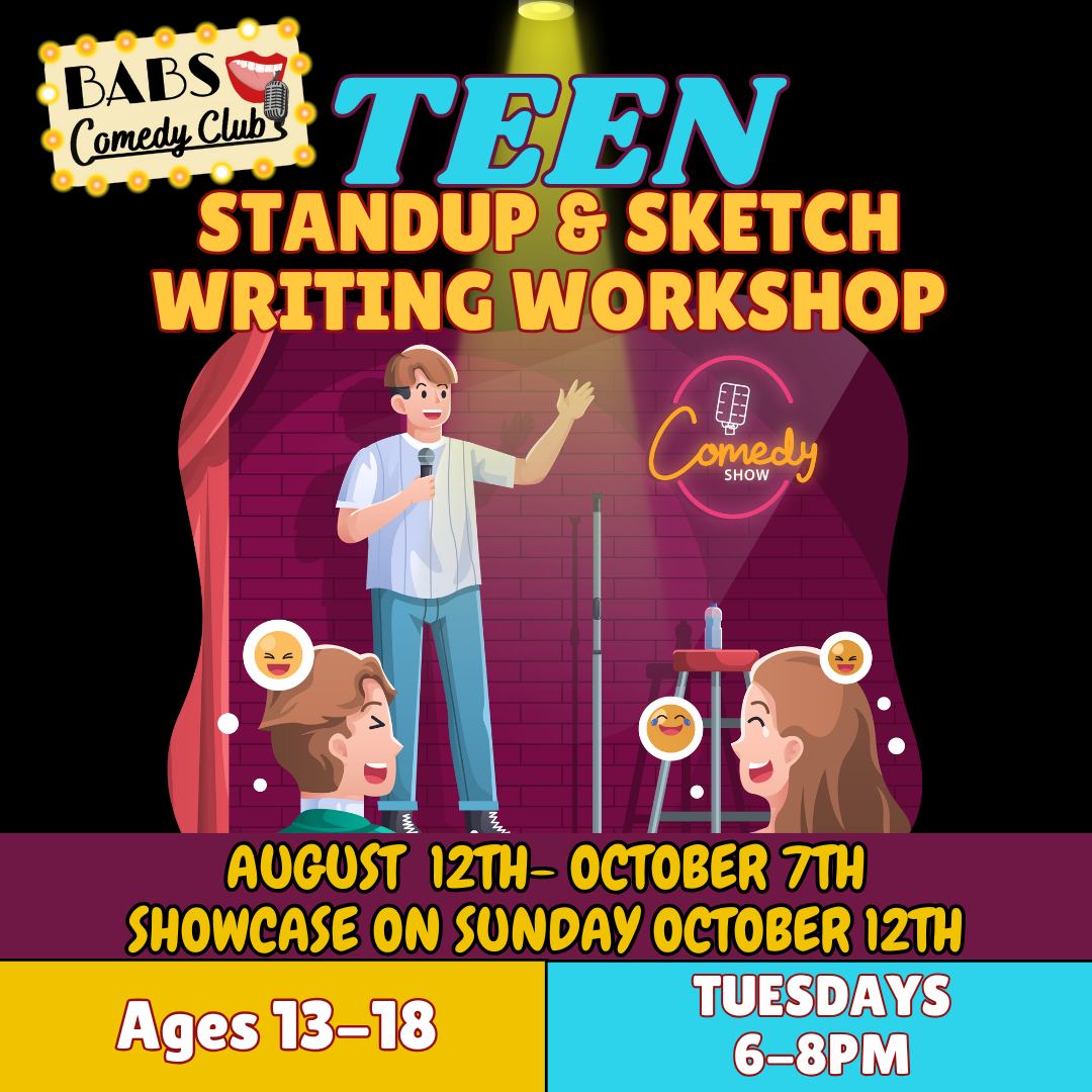 Got something to say? Say it funny. In this 10-week workshop, teens will learn how to generate endless material, master the anatomy of a joke, and sharpen their stand-up and sketch writing skills. Explore classic comedy formats, build your writing chops, and bring your best material to life in a final showcase on the BABS Comedy Club stage! Weekly schedule as follows: