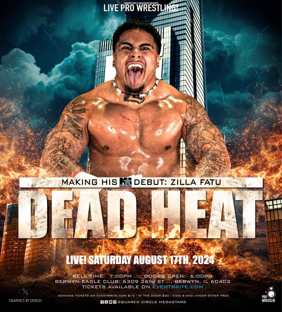 Squared Circle Megastars invites you to Dead Heat, a stacked match card for a great night of wrestling at the legendary Berwyn Eagles Club on 6309 26th St in Berwyn, IL 60402. Eight amazing matches for under $25 a person.