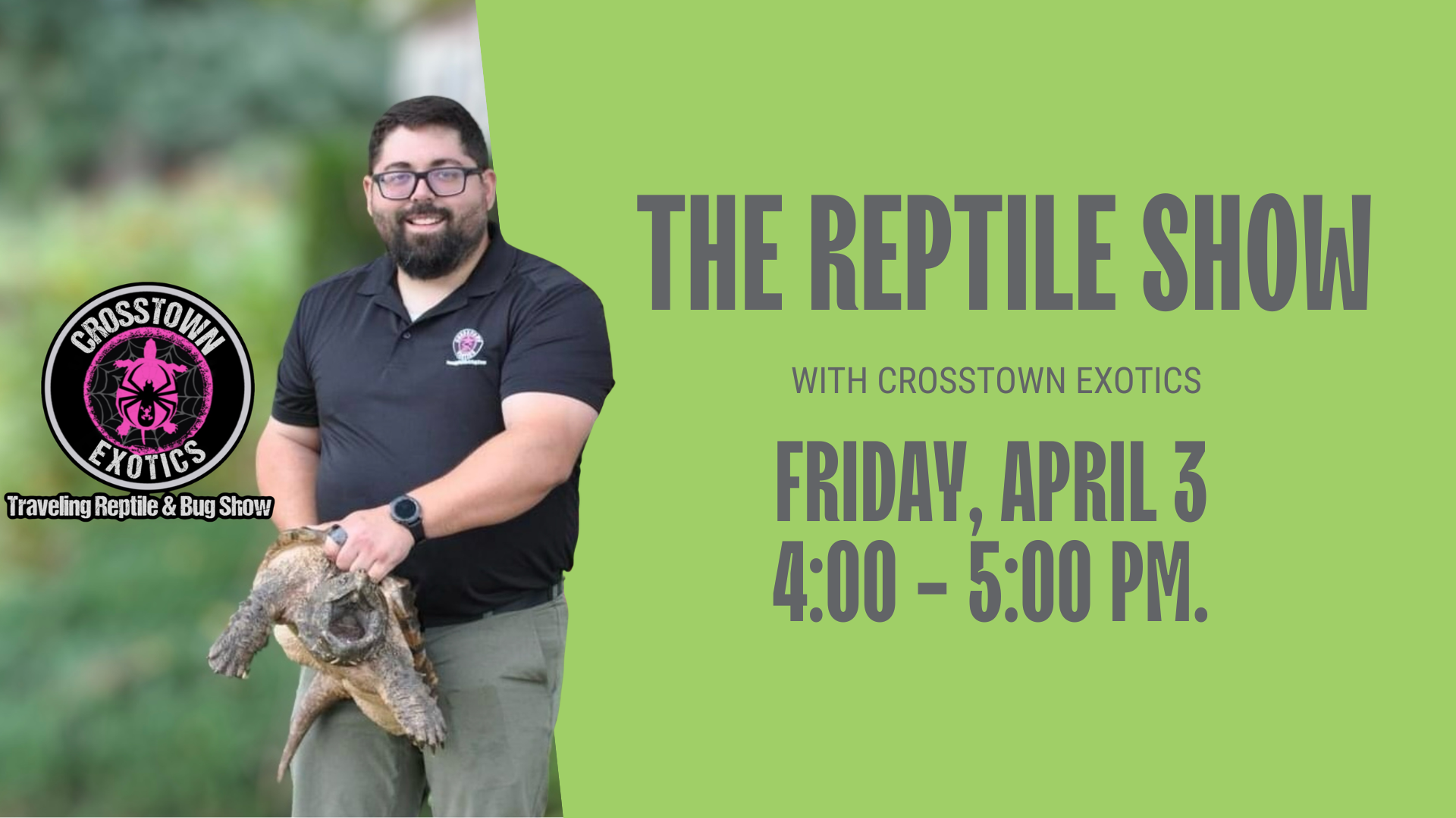 Crosstown Exotics is a traveling reptile and bug show known for its interactive, educational entertainment, bringing audiences face‐to‐face with an incredible lineup of reptiles, amphibians, and invertebrates. Their presentations feature a diverse mix of “cold‐blooded ambassadors” from giant tortoises and impressive pythons to frogs, lizards, and amazing insects.
