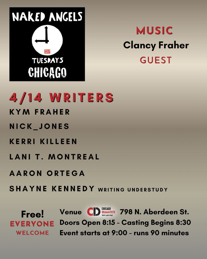 If you are an actor and would like to be considered for reading, show up between 8:15-8:30 and let us know! You do NOT need to bring a headshot or resumé. Casting begins at 8:30 and we'll let you know if you are cast. Readings begin at 9:00. Event is over at approximately 10:30 p.m.