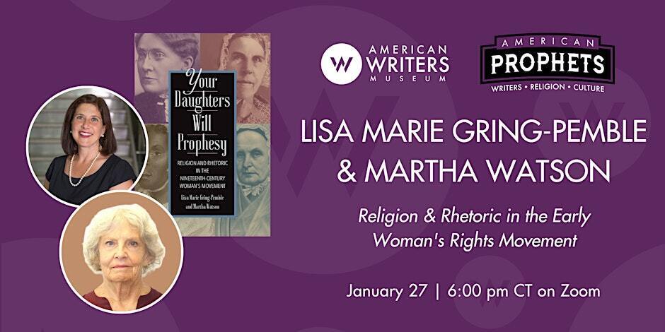 Scholars Lisa Marie Gring-Pemble and Martha Watson join us online to discuss their book Your Daughters Will Prophesy: Religion and Rhetoric in the Nineteenth-Century Woman’s Movement. Their work explores how nineteenth-century women used the Bible to claim their voice on the moral questions of their day.