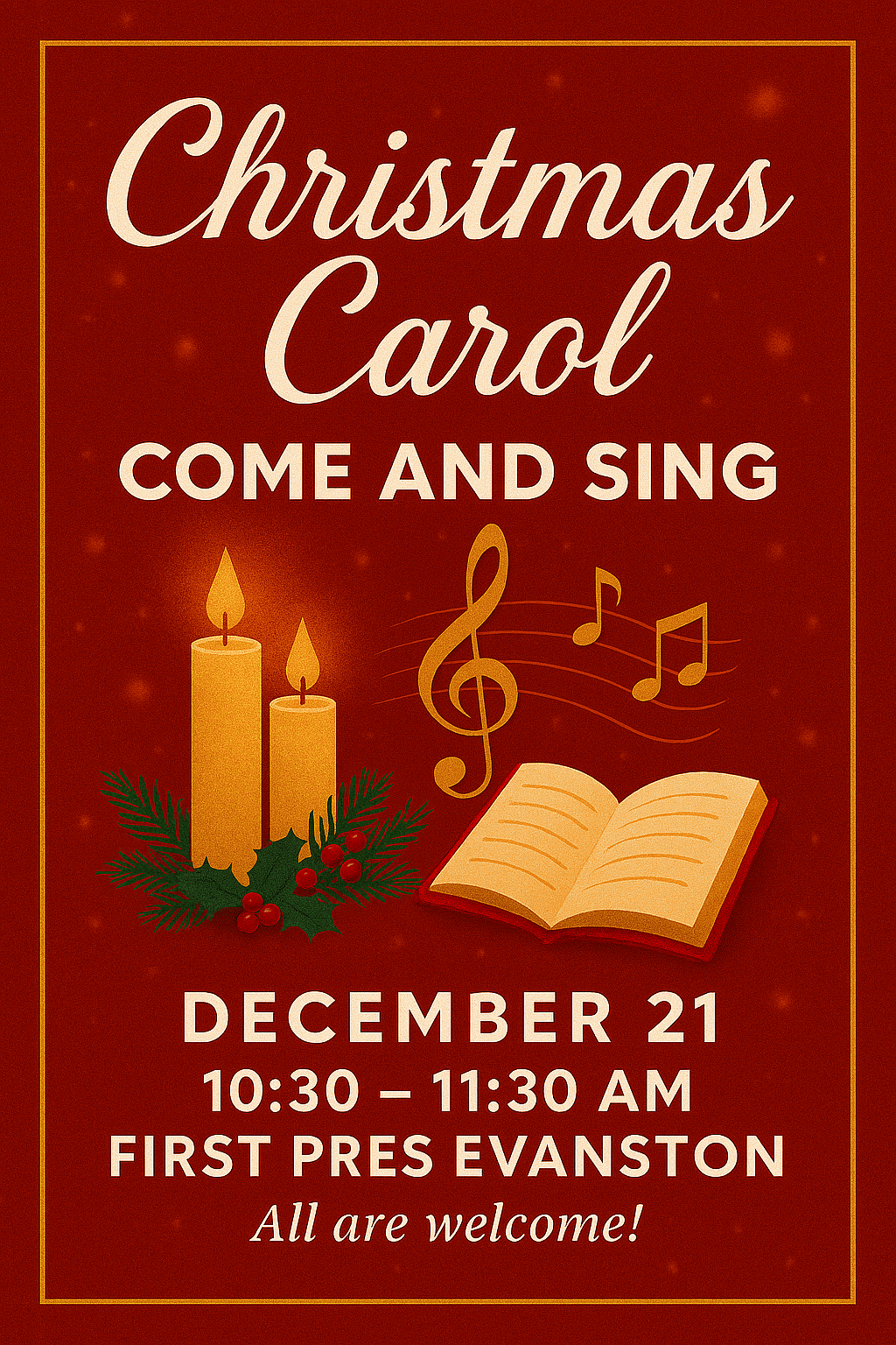 YOU’RE invited to make a joyful noise with the Choir on our next Come and Sing Sunday – Carol Sing Edition!On this special morning, the choir will lead the congregation in the 4th Sunday of Advent Worship Service with the beloved First Pres traditional Carol Sing.