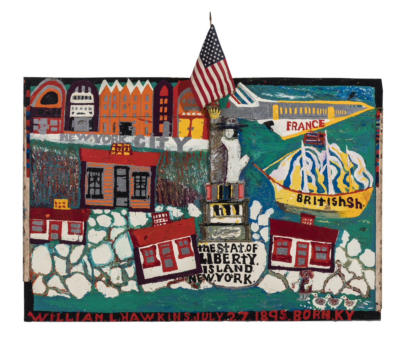 Image Credit: William Hawkins (American, 1895-1990). The Statue of Liberty, 1986. Paint, collage, enamel and found object on plywood, 73 x 84 1/4 x 5 3/4 in. Collection of Intuit Art Museum, gift of Lael and Eugenie Johnson, 2004.37.1. © Estate of William Hawkins, courtesy of Ricco/Maresca Gallery. Photo by Michael Tropea, Chicago