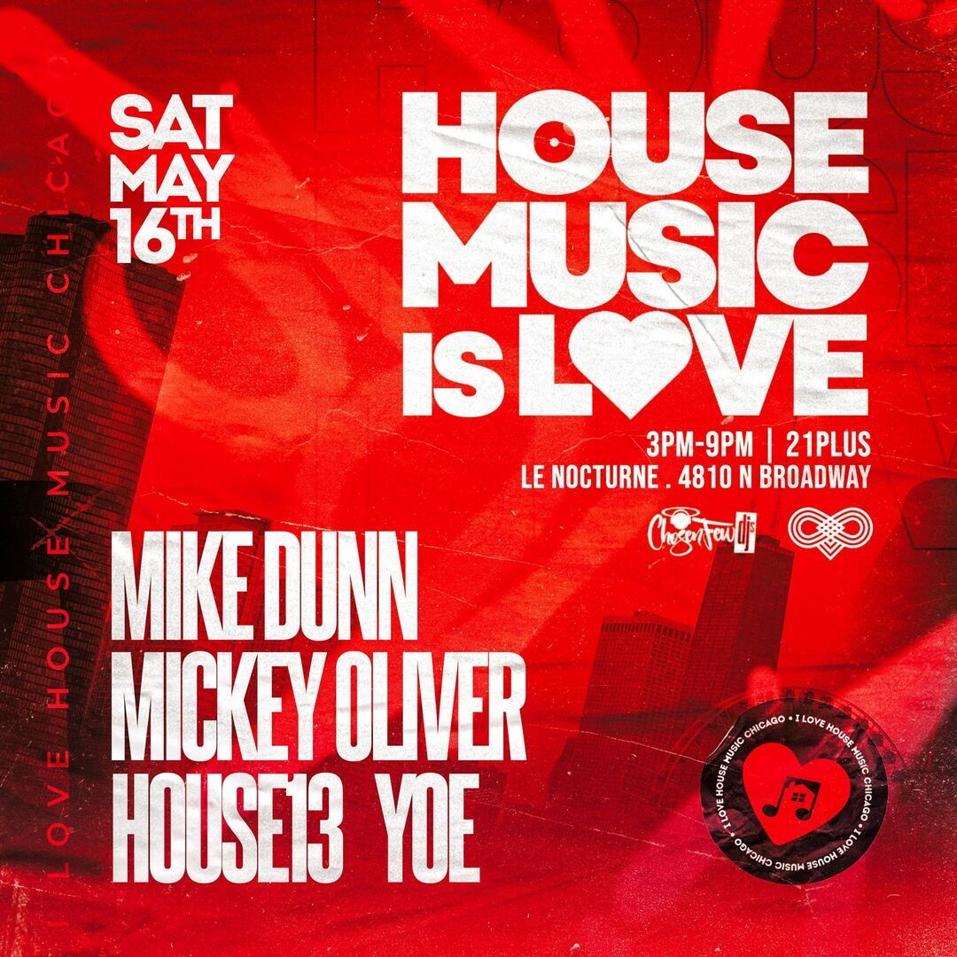 House Music is Love day party. Chosen Fews Mike Dunn and Hotmix 5's Mickey Oliver DJ w House13 and Yoe at Le Nocturne 3p-9pm.
