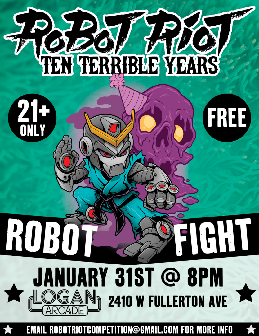 Wrestlemania meets Battlebots in this tabletop-sized tournament! Watch live robots duke it out for glory and honor. Celebrate Robot Riot's 10th anniversary at Logan Arcade!