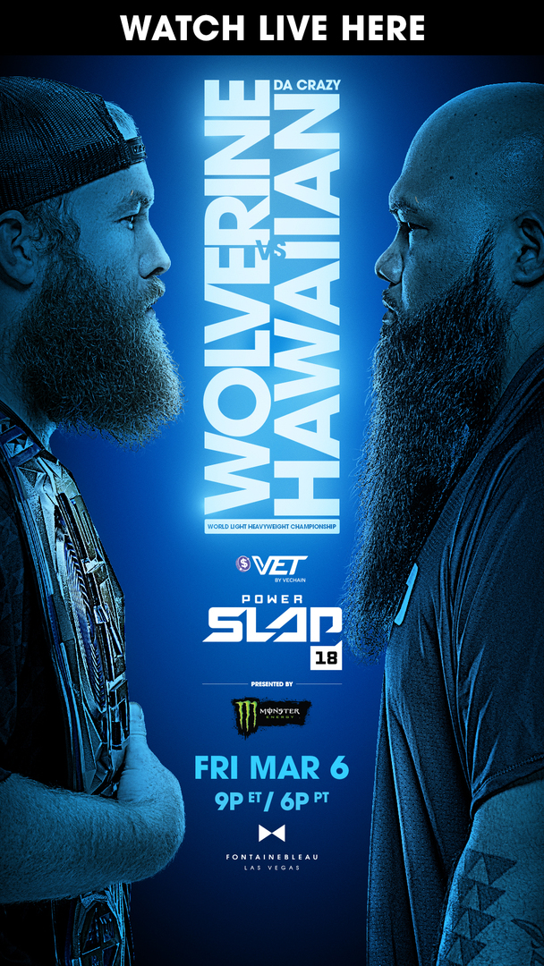 Power Slap Viewing Party Friday, March 6! The main card is headlined by Ron "Wolverine" Bata vs. Koa "Da Crazy Hawaiian" Viernes in a light heavyweight championship match. The co-main features Alan “The Kryptonian” Klingbeil vs. Logan “Kill Shot” Greenhalgh (light heavyweight). 8 p.m. CST. No cover. No reservations.