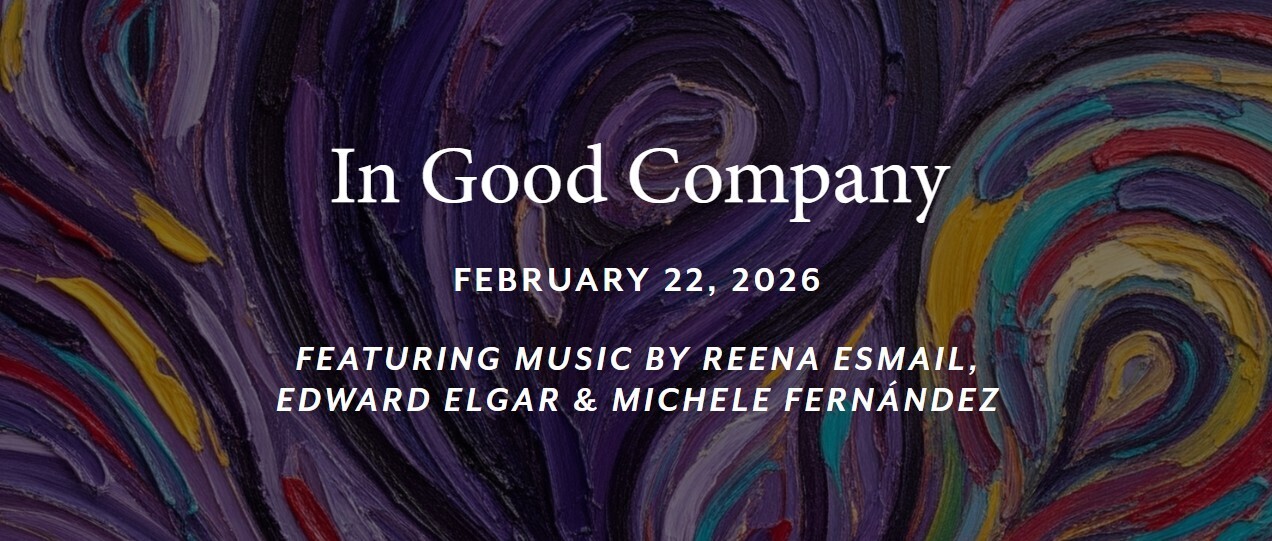 In Good Company, the second subscription series concert of the 2025/26 Season, opens with Reena Esmail’s Tuttarana — its title combining the Italian word tutti and the Hindustani musical form tarana — a thrilling fusion of Eastern-inspired rhythms and athletic ensemble interplay.