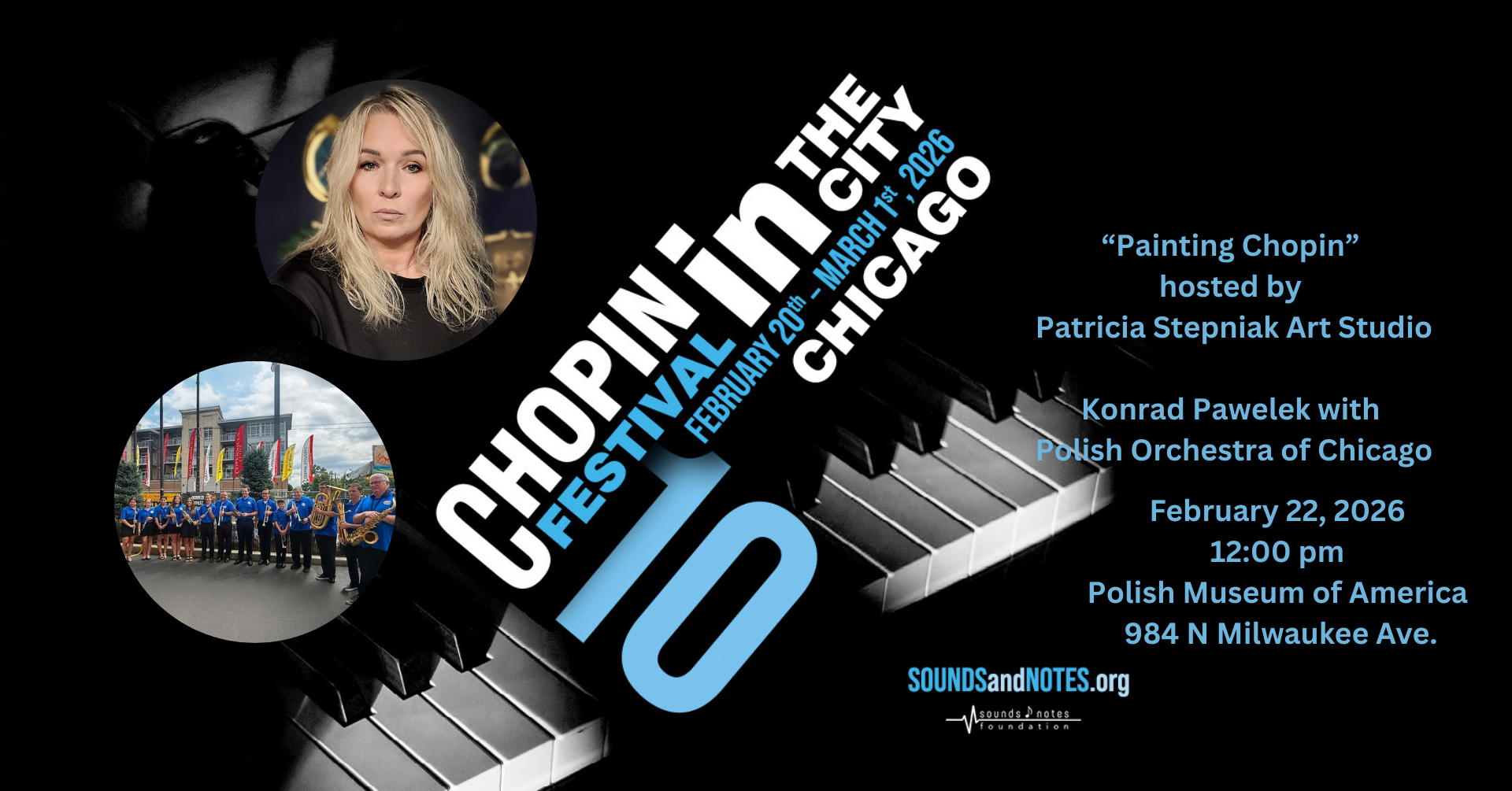 Painting Chopin invites artists of all ages to create freely while Chopin’s music fills the room. With Konrad Pawelek and the Polish Orchestra of Chicago setting the mood, and artist Patricia Stepniak guiding the creative energy at the beautiful Polish Museum of America, it’s joyful, inspiring, and perfect for the whole family.
