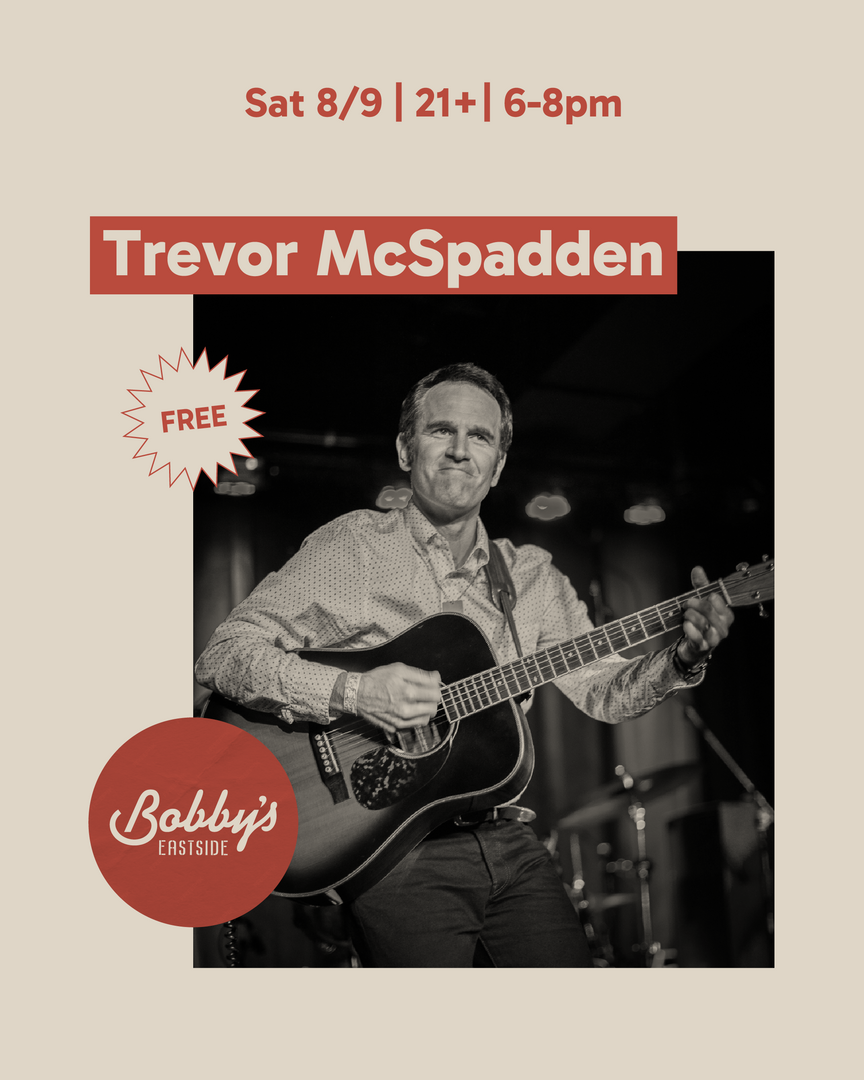 HomeEventsTrevor McSpadden @ Bobby’s Eastside This Event has Passed Trevor McSpadden @ Bobby’s Eastside Saturday, August 09, 2025 6:00 PM - 8:00 PM 6:00 PM - 8:00 PM See all dates and Times Robert's Westside Parking Deals Get a Ride LYFT UBER Add to Calendar 08/09/2025 06:00 PM 08/09/2025 08:00 PM America/Bahia_Banderas Trevor McSpadden @ Bobby’s Eastside 6PM – 8PM FREE TO ATTEND Bring $ To Tip The BandEvent LinksWebsite: https://go.evvnt.com/3146923-0 Details & Tickets: https://www.upcomingevents.com/chicago/events/roberts-westside/trevor-mcspadden-bobbys-eastside-487865?ref=uceaddevent Robert's Westside, 7321 Madison Street, Forest Park, IL, 60130 Set Reminder Categories Concert, Live Performance Neighborhoods Galewood (Chicago)The Island (Chicago) View Event Website » 6PM – 8PM FREE TO ATTEND Bring $ To Tip The BandEvent LinksWebsite: https://go.evvnt.com/3146923-0