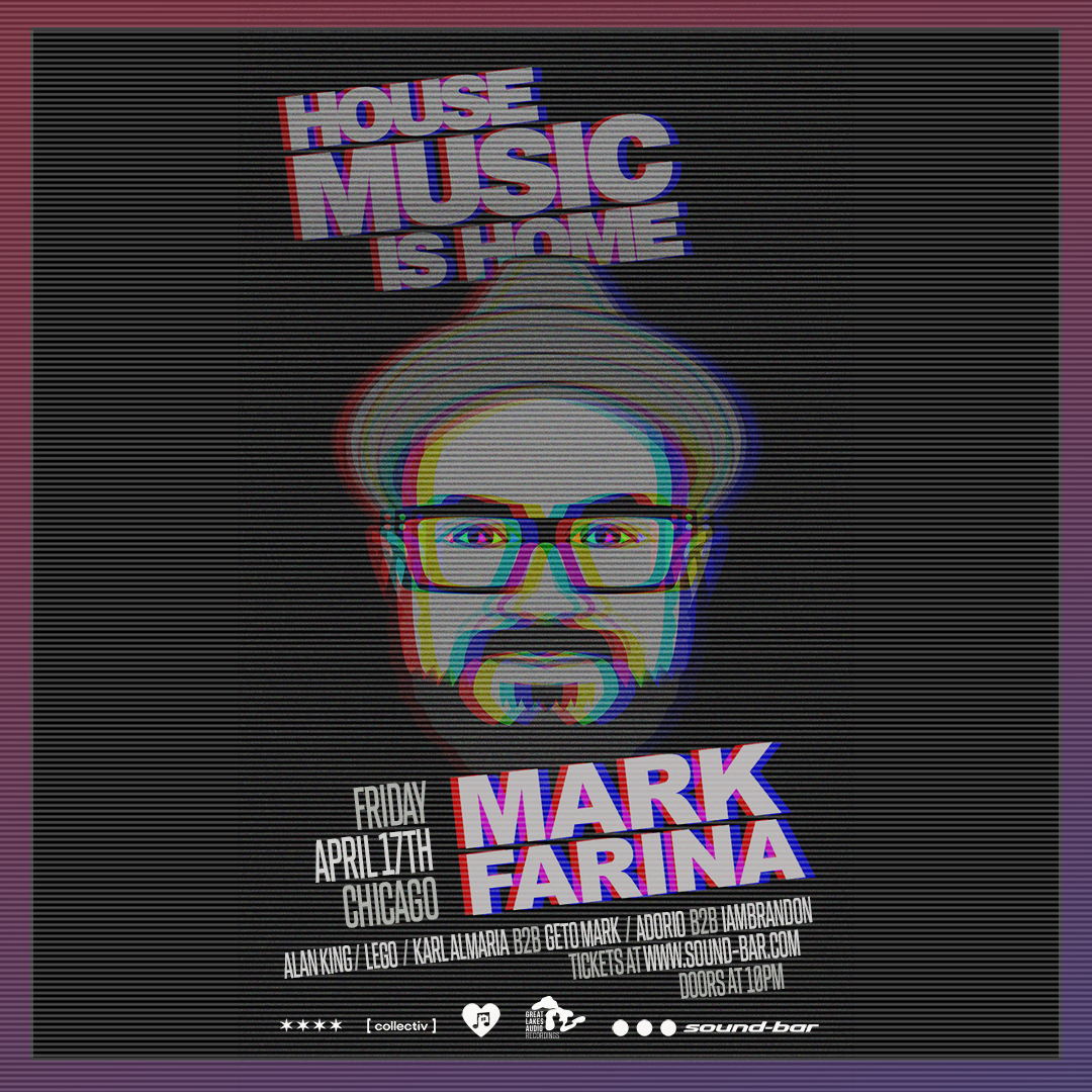 House Music is Home. A gigantic DJ Line up w Mark Farina, Alan King, Lego, Karl Almaria B2B Geto Mark, Adorio B2B IAMBRANDON DJing at Soundbar. Free w RSVP.