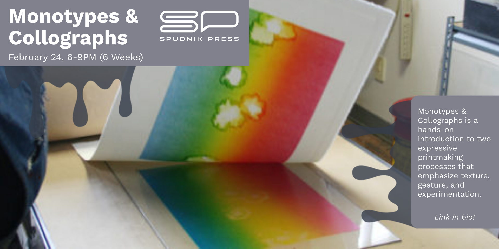 Monotypes & Collographs is a hands-on introduction to two expressive printmaking processes that emphasize texture, gesture, and experimentation. This class is ideal for beginners as well as artists working in painting, drawing, mixed media, or sculpture who want to explore printmaking in an approachable, playful way.