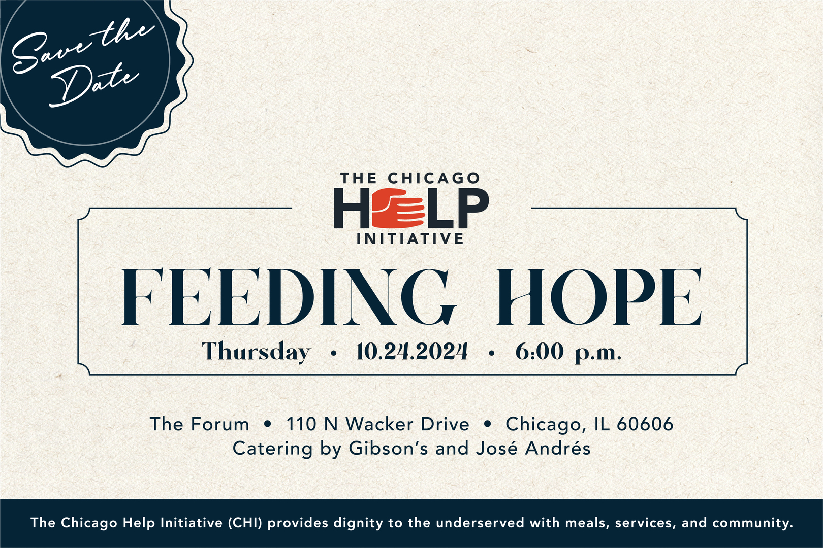 The Chicago Help Initiative (CHI) are fighting to put a stop to hunger, homelessness, and economic insecurity in Chicago! They need your help! Join us October 24th for the Feeding Hope Annual Fundraiser at The Forum. The fundraiser will help support programing for the coming year that will provide access to food, health services, shelter and employment to Chicagoans. Join us for food, drinks, and a silent auction! Follow The Chicago Help Initiative for more information.