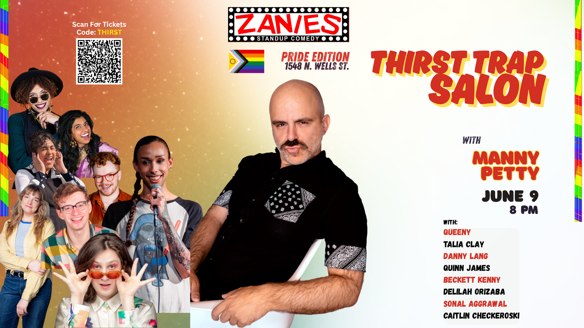 Thirst Trap Salon with Manny Petty – Pride Edition Join Manny Petty and friends as they celebrate Pride Month with a stellar lineup of Chicago’s funniest LGBTQ+ comedians in Thirst Trap Salon; A Queer Comedy Blowout.